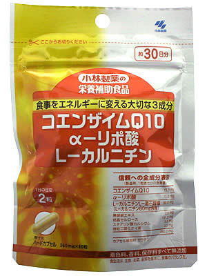 小林製薬の栄養補助食品 CoQ10+αリポ酸+Lカルニチン 60粒 1粒中にコエンザイムQ10を15mg、α-リポ酸を15mg、L-カルニチンを90mg配合し…【日用品屋】小林製薬の栄養補助食品 CoQ10+αリポ酸+Lカルニチン 60粒【※キャンセル・変更不可】【日用品屋】と記載のある商品のみ同梱可能です。